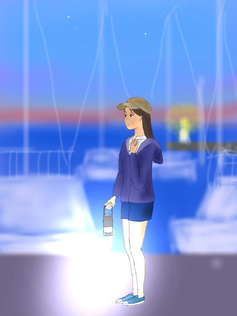 の部分を描いてみたもの。私=男性説として、マリーナで待っている女性の姿である。